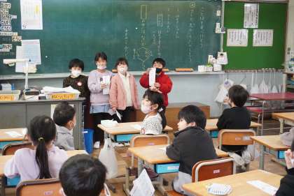 1年1組の国語です。班によるクイズ大会を通して、「ことば」をたくさん見つけています。