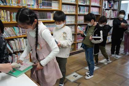 図書室を利用する3年生を撮影しました。