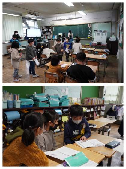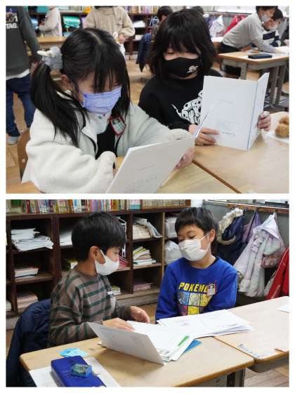 2時間目の様子を撮影しました。自分が選んだおはなしから、「すてきだったな」と感じた部分と理由を交流しあっています。