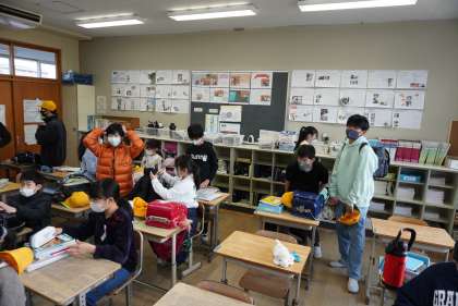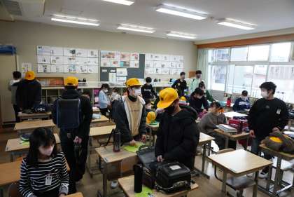 写真は朝の準備をする6年1組です。