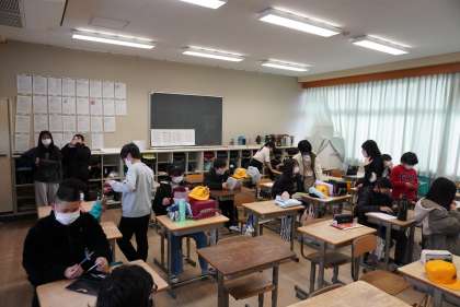 朝の準備をする5年2組です。(1組は更衣中でした)