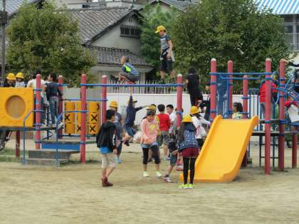 ごはんを食べ終わったところから、遊具で遊んでいます。