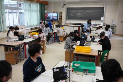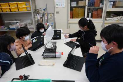 4年1組です。水が沸騰したときに出る泡の正体を、実験で確かめています