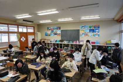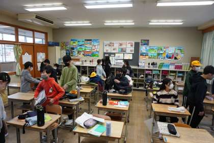 朝の準備をする6年1組、2組を撮影しました。