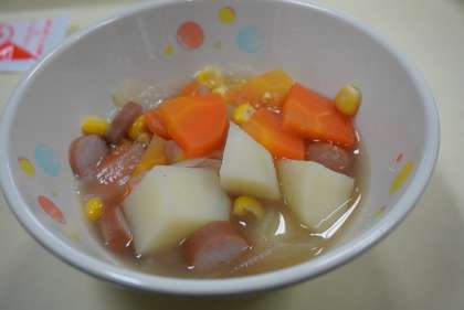 今日は揚げパン、ジャガイモのスープ煮、ブロッコリー、ノンエッグマヨ、牛乳です。
