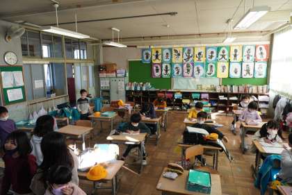 朝の準備をする2年1組です。(2組は更衣中でした)