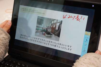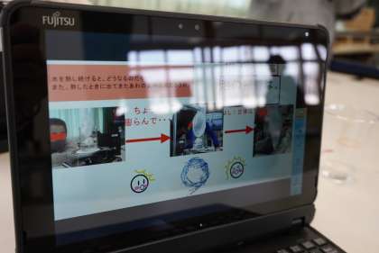 実験のまとめをタブレットを使って記録し、提出していました。