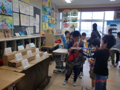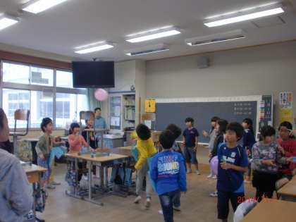 住北祭り、4年生は、1組が「風船バレー」、2組が「忍者やしき」でした。