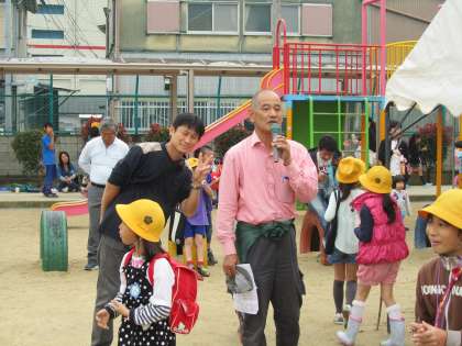 雨で心配していた「だんじり太鼓」ですが、地域の保存会の皆様によるご尽力で子どもたちの発表ができました。残念ながら青年団による太鼓演奏はできませんでしたが、来年はまたぜひともご披露していただければと願っています。