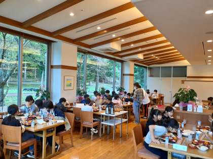朝食です。体操、散歩のあと、みんなしっかりと食べています。