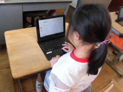 2年生が算数の学習でデジタルドリルを活用しています。大東市の小学校では、今年の9月より、AI型デジタルドリル「Qubena(キュビナ)」を導入しています。AI型デジタルドリルは、児童がまちがえた解答をAIで解析し、つまずきの要因を克服するための問題が自動的に出題される教材で、個別最適化された学びにつながります。