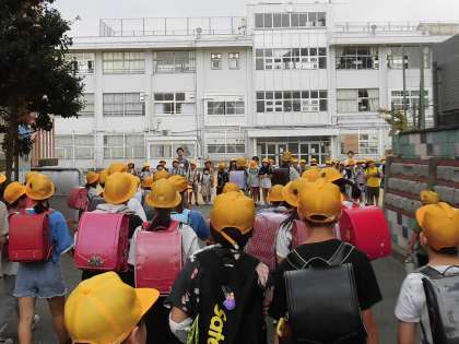 秋が近づいている中ですが、日中はまだまだ汗ばむ暑さが続いています。朝の登校時に自然発生的にできた「あいさつ隊」が、学年をこえて広がってきました。自然にできるあいさつは、とても気持ちの良いものです。