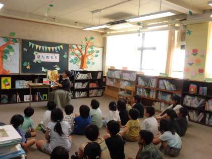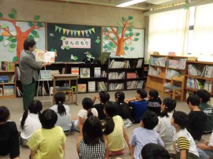 本校PTAの同好会「おはなしネバーランド」の方々に来校いただき、図書室でおはなし会を実施しています。今日は、3年生、2年生の1クラスずつで絵本の読み聞かせを行っていただきました。子どもたちは目を輝かせて、本の世界を楽しんでいるようすでした。