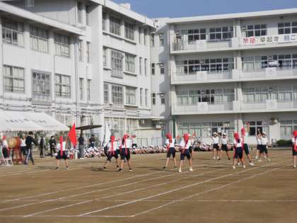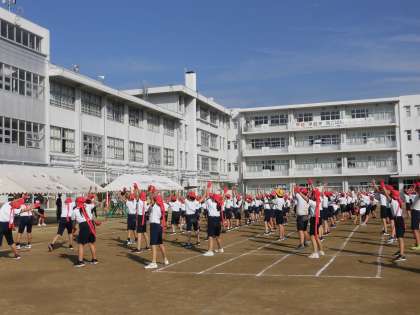 1年生から6年生が合同で、2回目の運動会全体練習です。今日は、応援合戦の練習、そして整理体操、閉会式の流れについて確認をしました。