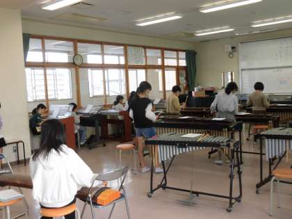 5年生の音楽の学習です。11月に行う校内音楽会に向けた合奏の練習です。