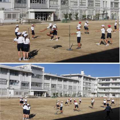 6年生が体育の授業で「走り高跳び」に取り組んでいます。踏み切りのタイミングなど、コツをつかむのがなかなか難しい種目でもありますが、互いにアドバイスの声かけをしながら学び合っています。