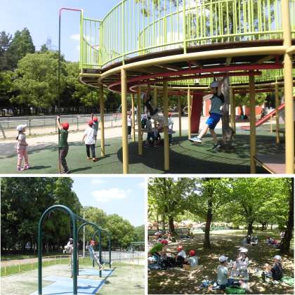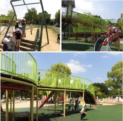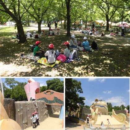 2年生が電車に乗って久宝寺緑地へ遠足に行きました。さわやかな青空のもと、遊具でたくさん遊んだり、蝶や虫を追いかけたり、木陰でおいしくお弁当を食べて、楽しい時間を過ごしました。