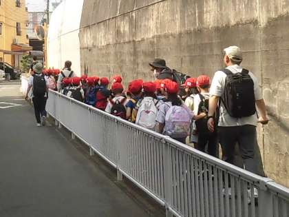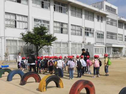 1年生が寝屋川公園へ遠足に出発しました。小学校はじめての遠足、朝からとてもうれしそうにワクワクしているようすでした。