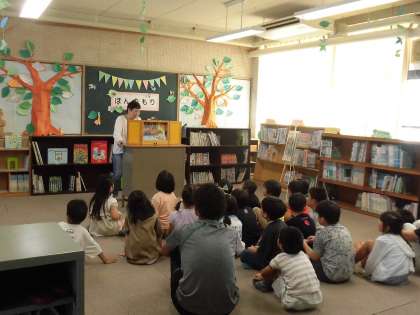 本校PTAの同好会「おはなしネバーランド」の方々が、1クラスずつ全クラスで図書の時間におはなし会を実施してくださっています。