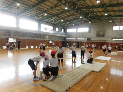 5年生が体育の学習で「走り高跳び」に取り組んでいます。仲間どうしアドバイスや励ましの言葉をかけ合いながら取り組んでいます。
