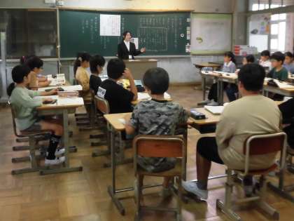 4年生の国語、「秋の楽しみ」の単元の学習です。「秋と言えば・・・」の質問に、秋の行事や食べもの、虫や植物など、たくさんの意見が出てきました。今日の授業は、本校の卒業生でもある教育実習生の先生との授業です。