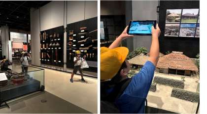 5年生が校外学習に出かけています。午前中は、国立民族学博物館での見学です。