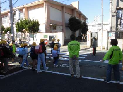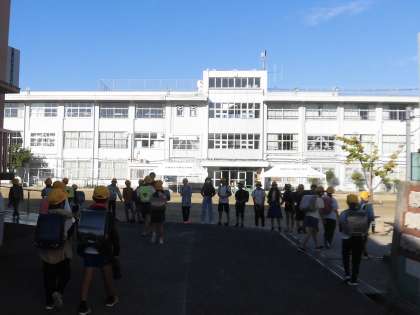 秋晴れのさわやかな青空が広がる朝です。通用門付近では住道北民生委員の方々が、子どもたちの登校の安全を見守ってくださっています。普段より、登下校の安全を見守ってくださっている旗持ち当番の保護者の方々、見守り隊の皆様にもあらためて感謝申し上げます。通用門の奥では自主的な「あいさつ隊」の子どもたちの元気な声がひびいています。