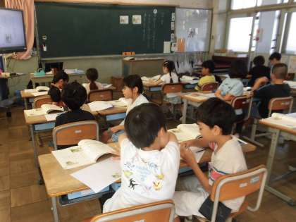 2年生の国語の学習です。「お手紙」の物語に登場する“かえるくん”と“がまくん”の気持ちについて考えたことを、互いに交流しながら学習しています。