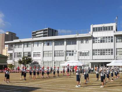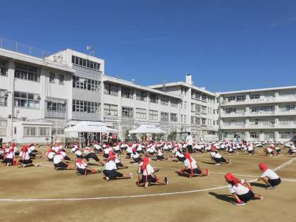 全校児童がそろって2回目の全体練習、今日は応援合戦の練習や、整理体操、閉会式の流れの確認を中心に行いました。運動会にむけて気持ちが高まってきています。