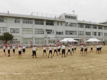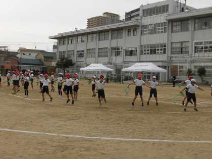 3年生・4年生合同での団体演技の練習です。リズムにのって、歌の歌詞を口ずさみながら踊る姿もみられます。