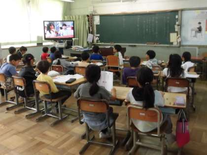 2年生の国語の学習です。「話し合いの進め方」についてモデル動画を映像で見ながら学んでいます。