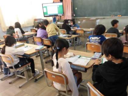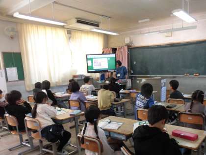 2年生の算数の学習です。かけ算を使った解き方の工夫について、互いの考えを交流しながら学習しています。