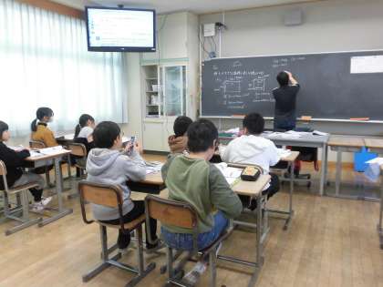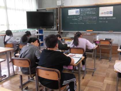 4年生の算数の学習です。キロメートルなど単位の大きな面積の求め方について、クラスを2分割した少人数で学習しています。