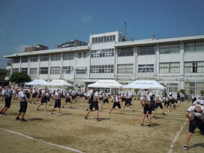 運動会にむけて1回目の全体練習です。今日は朝から気温も高くなってきているので、開会式の流れなどをできる限り短時間で確認をしました。