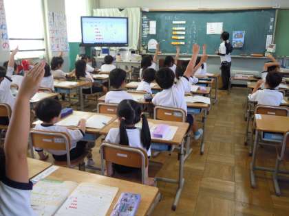 1年生の算数の学習です。「6の数は、いくつといくつからできている?」「1と5、2と4、3と3」、一生けん命に考えています。
