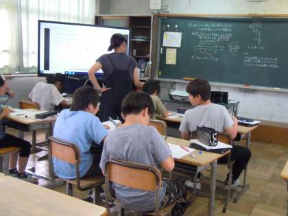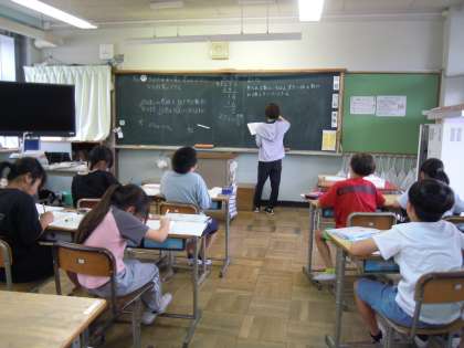4年生の算数の学習、クラスを2分割した少人数で学習しています。3ケタのわり算のひっ算に方法について、位取りなどを確認しています。