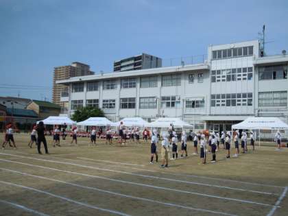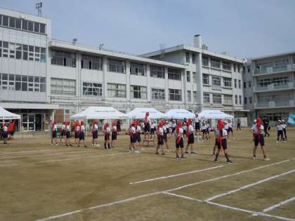 2回目の全校児童合同での全体練習、応援合戦では紅組、白組ともにとてもよく声が出ています。