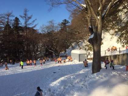 最後に雪遊び、楽しそうに雪を丸めてます。