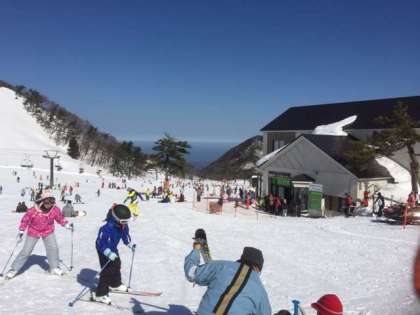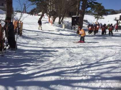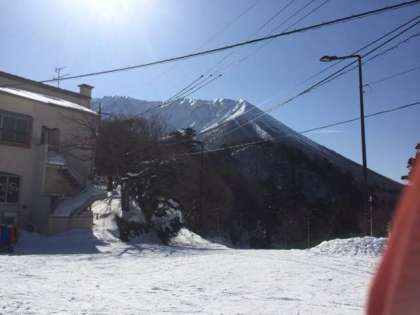 しんがりが戻って来ました。「もっとしたい」と言ってる声が何度も聞こえました。楽しかったですね〜。雲一つない青空のゲレンデ、そして雄大な大山の眺めに「さようなら〜」