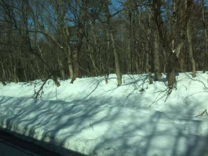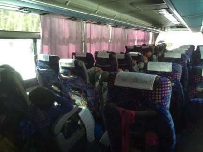 大山ホワイトリゾートにお別れしました。車窓から、と車内模様です。まずは休養、おやすみタイムにしています。一路大阪へ。