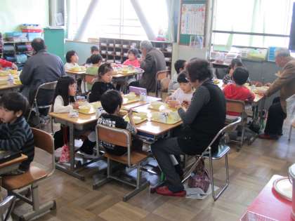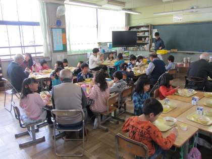 一緒に給食を食べた時には1年生から「給食のお味はどうですか?」と聞かれて、「おいしいですよ」と答えられ、さらに「おいしいのほかにはありますか?」と聞かれて班のみんなも大笑いしました。