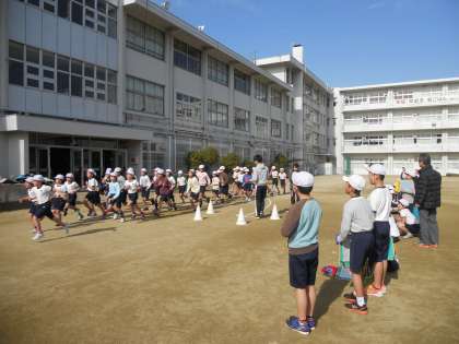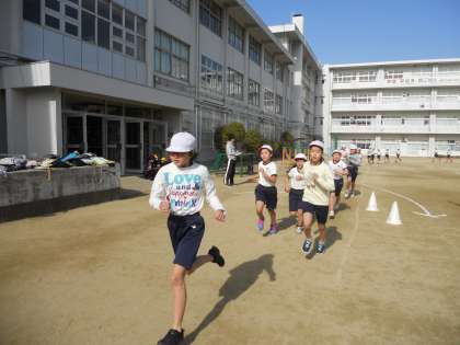 長く走ることが苦手な児童には、自然と伴奏する子があらわれ、その寄り添う気持ちがとてもうれしかったです。たくましく、優しく、素直に育つ4年生です。
