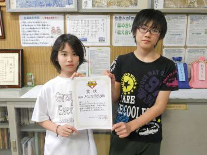 5月9日(火)の校長室。2人の6年生がバスケットボール大会の優勝報告に来てくれました。