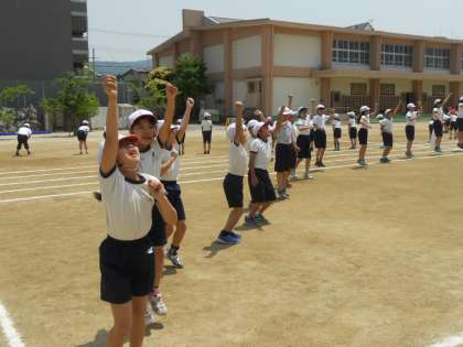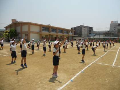 5月11日(木)の3時間目、4年生の運動会練習の様子です。運動場で、ダンスの練習をしていました。