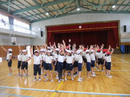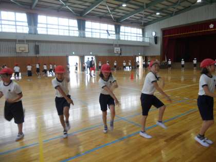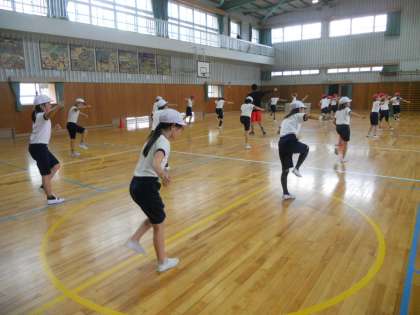 5月12日(金)の5時間目、4年生の運動会練習の様子です。体育館でダンスの練習をしていました。