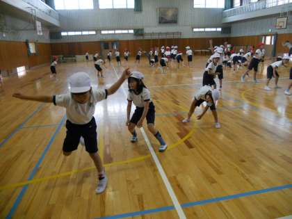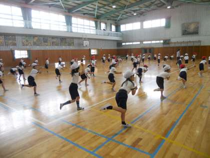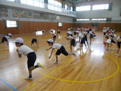 5月15日(月)の2時間目、2年生の運動会練習の様子です。体育館でダンスの練習をしていました。