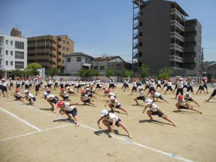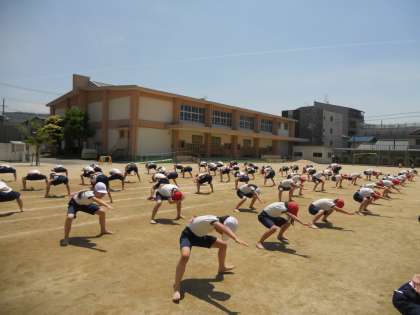 5月15日(月)の3時間目、5年生の運動会練習の様子です。運動場でソーランの練習をしていました。