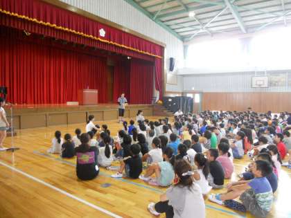 日頃、「はてな?」と思っていることを、日々の自主学習で、あるいは夏休みの自由研究で挑戦してみましょうと子どもたちにお話されました。