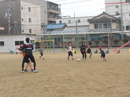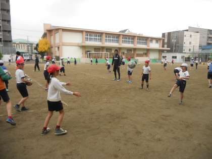 11月30日(木)の2・3時間目、Jリーグ所属「セレッソ大阪」のコーチの方々をお招きし、4年生がサッカーの実技指導を受けました。