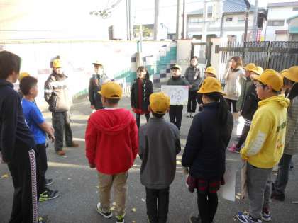 登校時刻前に集合し、啓発ポスターを持つなどして、元気にあいさつが交わせるように全校児童に明るく大きな声で呼びかけていました。